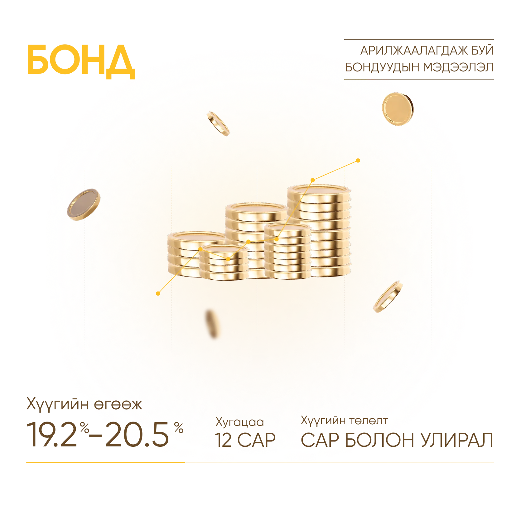ДЭЛГЭРЭНГҮЙАпекс Капитал ҮЦК нь судалгаа, шинжилгээнд үндэслэн дотоодын болон гадаадын засгийн газар, томоохон байгууллагуудын бондуудыг таны санхүүгийн зорилгод нийцүүлэн санал болгож байна.
